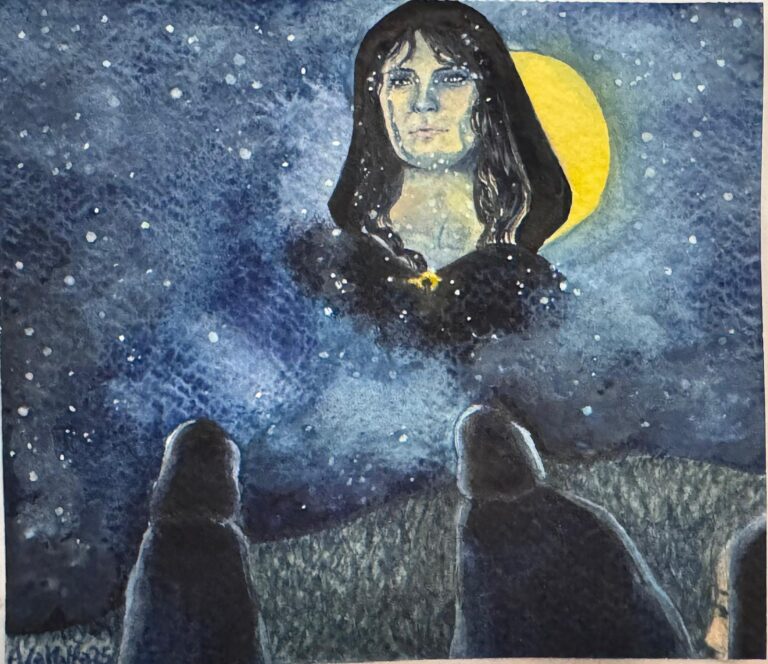 Noi abbiamo avuto la fortuna e l’onore di studiare con Bee Helygen, a Glastonbury, presso il suo Tempio. E questo nostro luogo è qui grazie anche alla sua dedizione come insegnante, come amica, come profonda conoscitrice e adoratrice di Cerridwen. Ci ha donato con amore le sue conoscenze e la sua presenza, con intensità. E di questo saremo sempre grate.